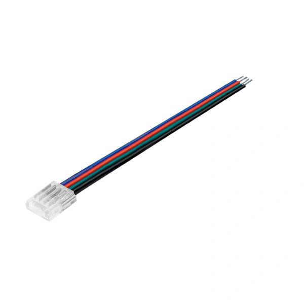 Conector rápido de plástico con 10 cm de cable, para tiras de LED RGB extraplanas de 10mm de ancho, IP20.