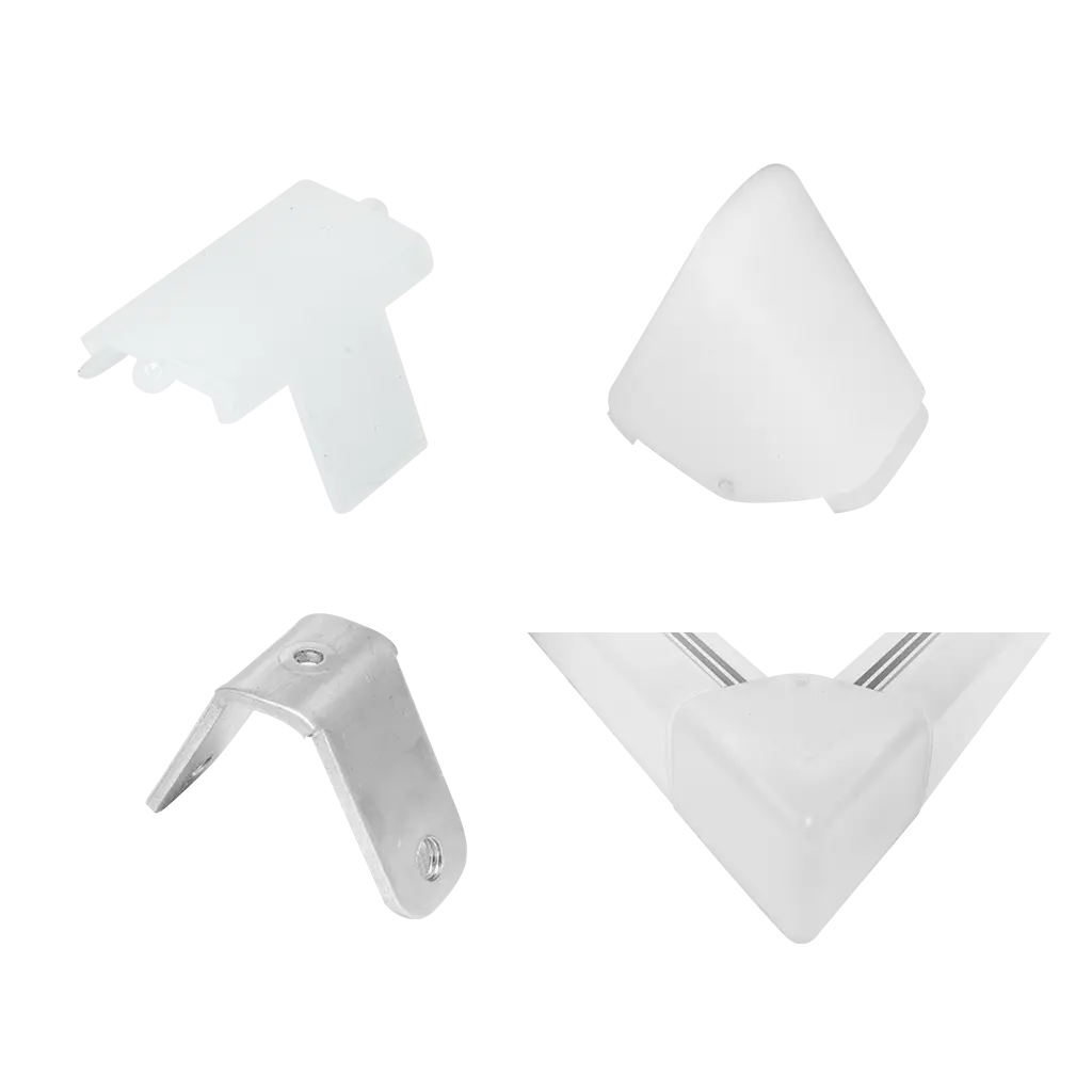 Kit de conector de metal, conector de mica difusa, conector de plástico, ángulo 90° vista lateral, incluye set de tornillos , para perfil DXA19
