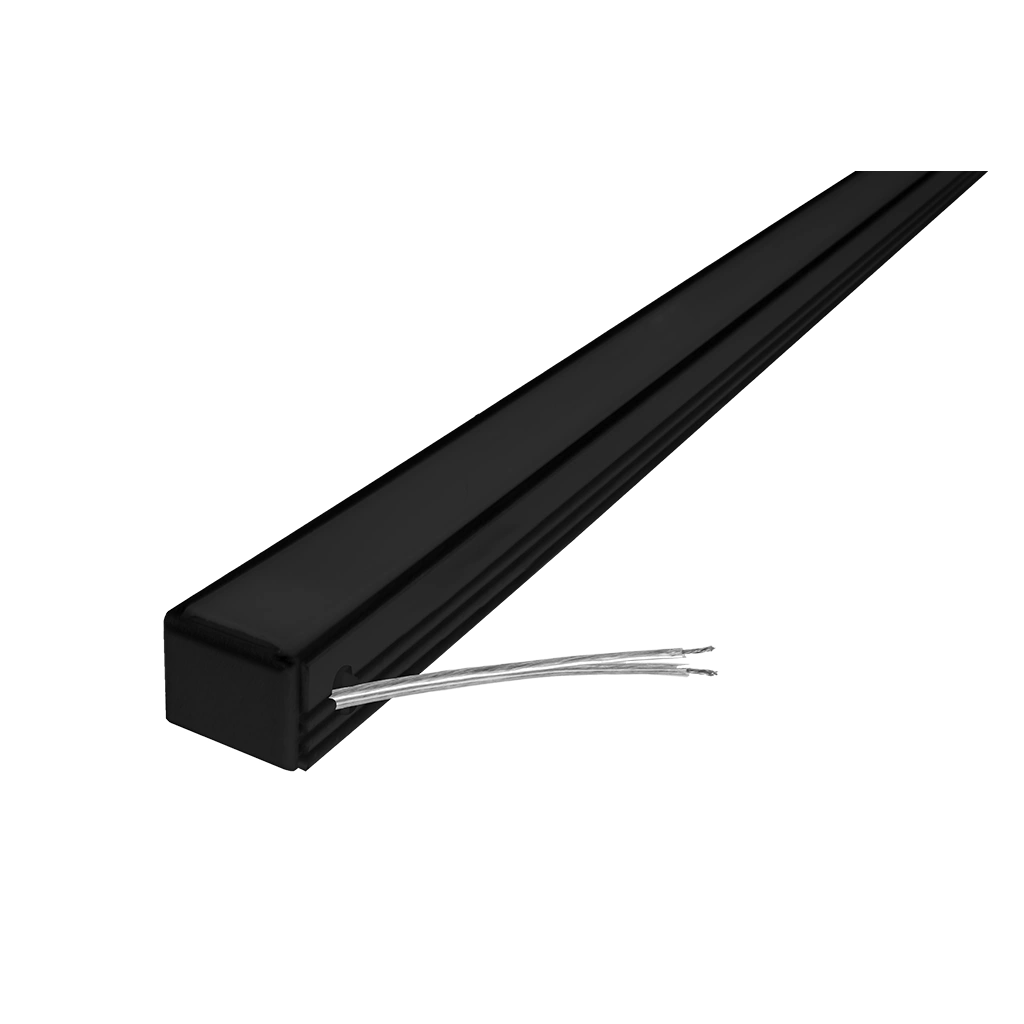 Luminario de LED, blanco cálido, 20 Watts, 2m de largo, óptica 120°, compatible con panel WPC, aluminio acabado negro y mica negra, 127V ca, protección IP20