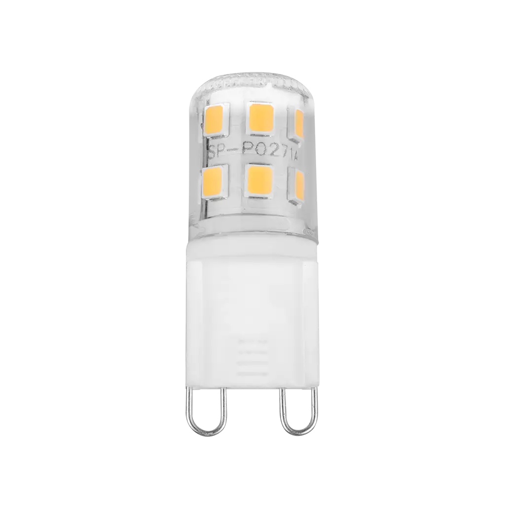 Lámpara tipo cacahuate base G9, de LED, atenuable blanco cálido, 5 Watts, óptica 270°, cerámica con cubierta de policarbonato, 110-127V ca, protección IP20