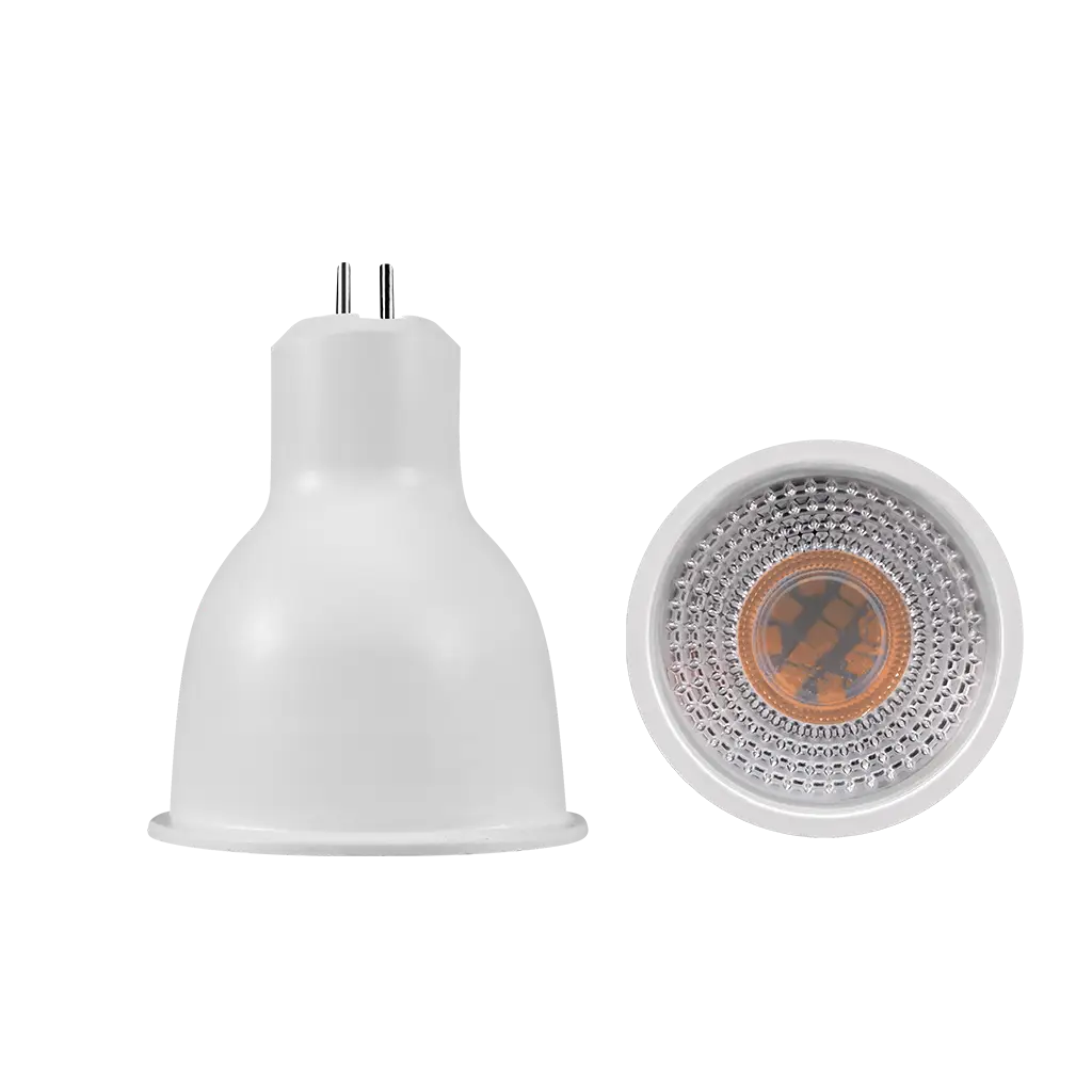 Lámpara tipo dicroico base MR16, de led, atenuable blanco cálido (3 000 K (Blanco cálido) K), 9 Watts, óptica 38°, carcasa de plástico cubierta transparente, 110-130V ca, protección IP20