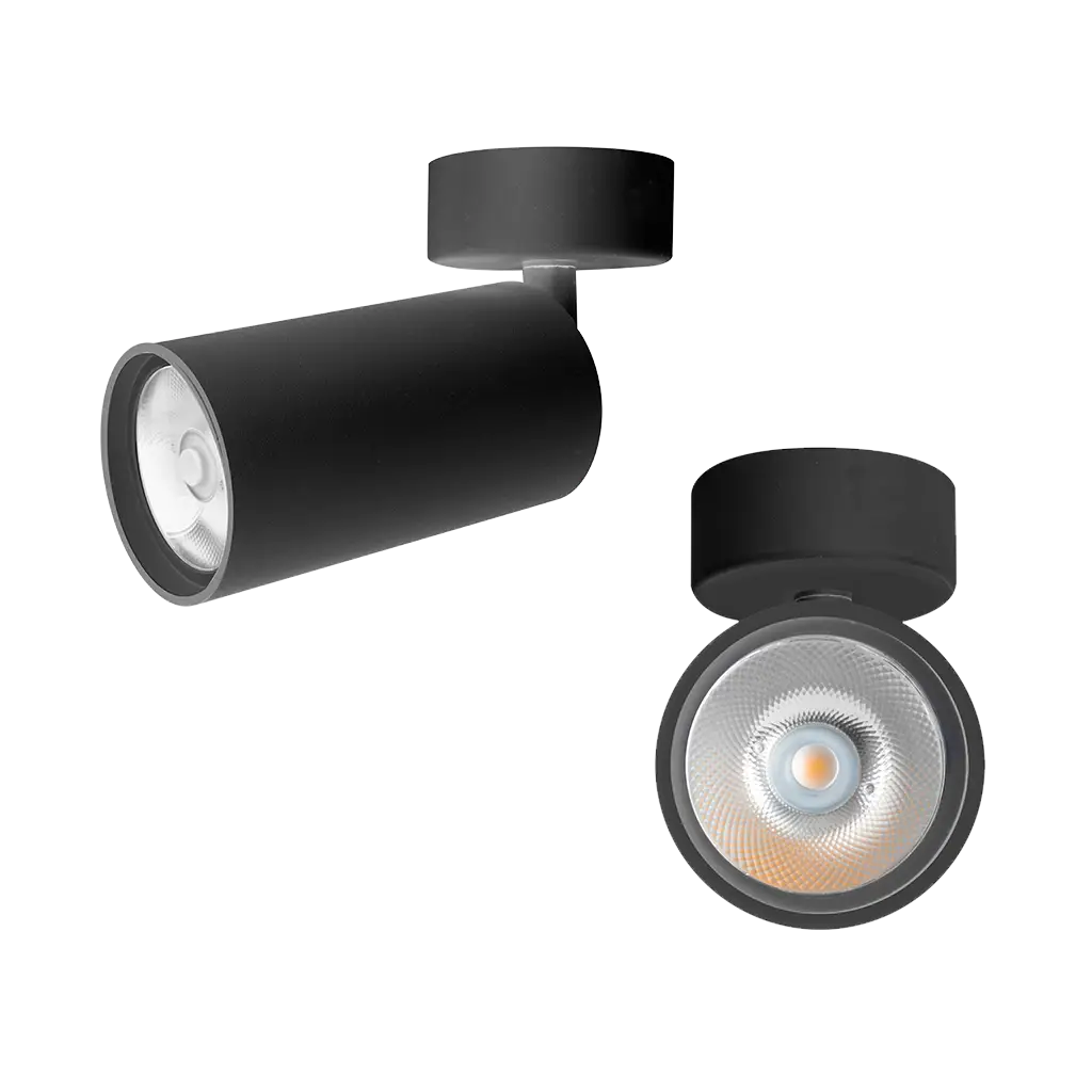 Luminario para lámpara tipo dicroica GU10, de led, redonda tipo cilindro, de sobreponer dirigible, aluminio acabado negro, no incluye lámpara, protección IP20