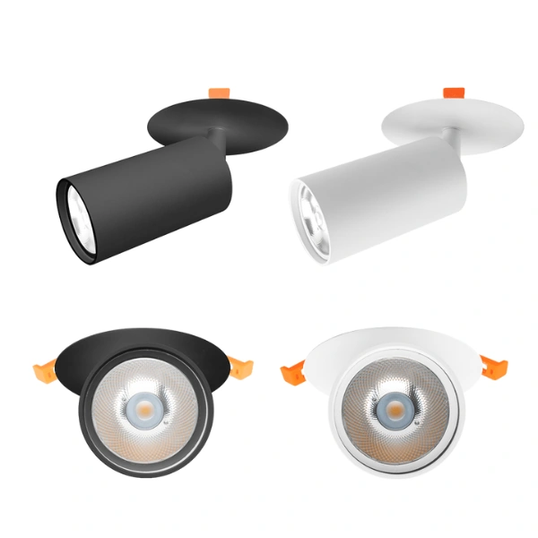 Luminario para lámpara tipo dicroica MR16 GU10 o módulo, de led, redonda tipo cilindro, de empotrar dirigible, aluminio acabado blanco, no incluye lámpara, protección IP20.