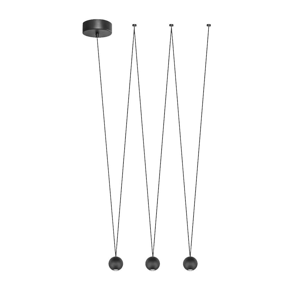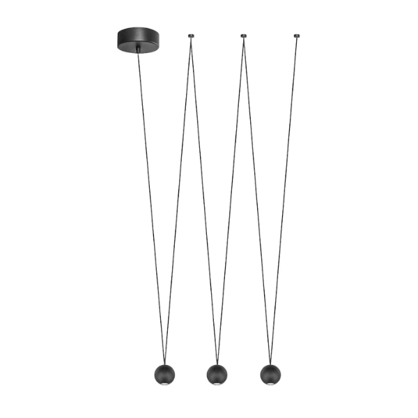 Luminario de LED con tres cuerpos esféricos, suspendido para sobreponer en techo.