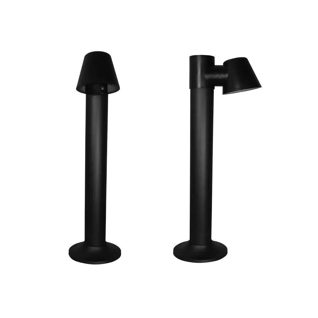 Poste tipo bolardo 60 cm de alto, para lámpara GU10, 7 Watts máx., de sobreponer, policarbonato acabado negro, no incluye lámpara, 85 – 277 V ca, protección IP54