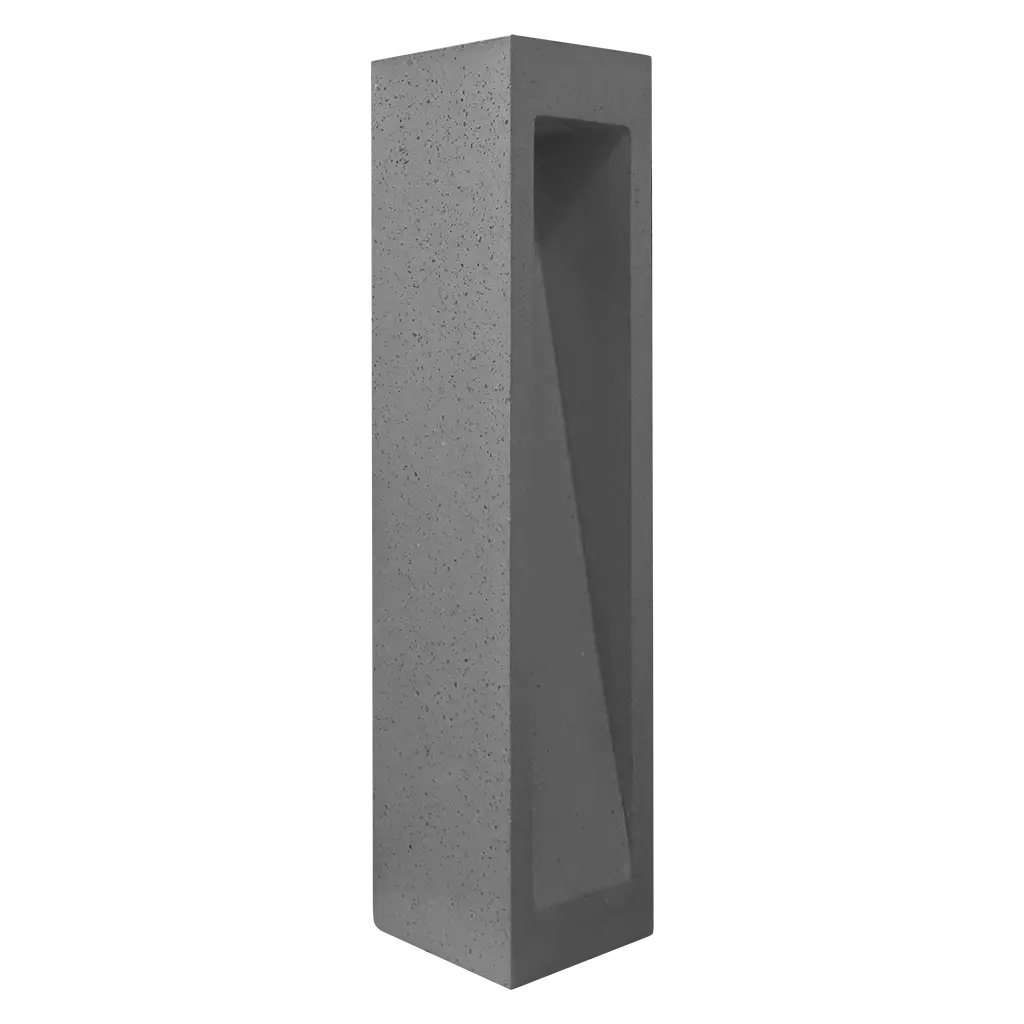 Poste tipo Bolardo 64 cm de alto, de LED, blanco cálido, 5 Watts, óptica de 38°, de sobreponer, concreto acabado gris, 110–130 Vca, protección IP54.