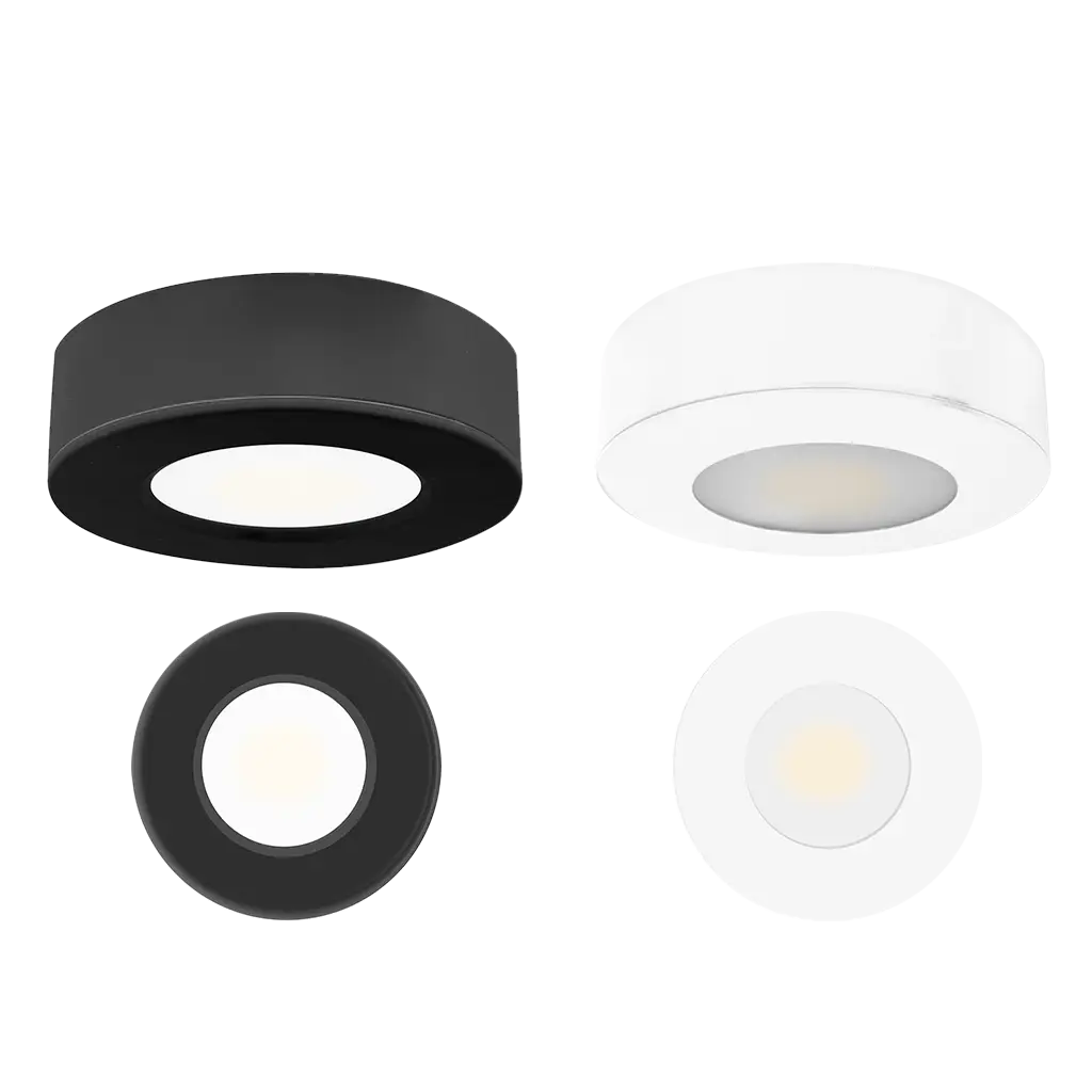 Luminario, de led, atenuable blanco neutro, 4 Watts, óptica 120°, redondo, de empotrar o sobreponer, aluminio acabado negro incluye arillo, 110-130V ca, protección IP20
