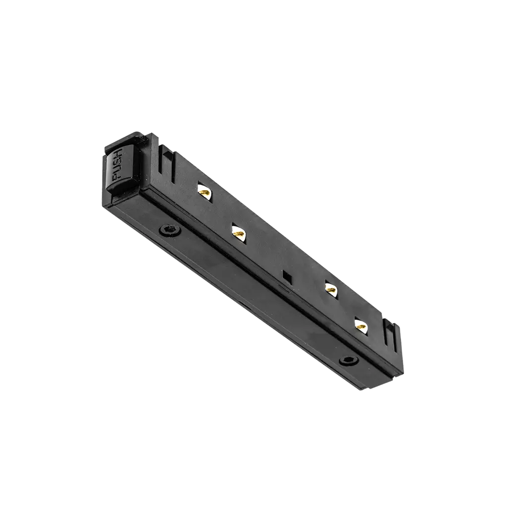 Conector electrificado lineal negro para riel magnético, 48Vcc 200W máximo