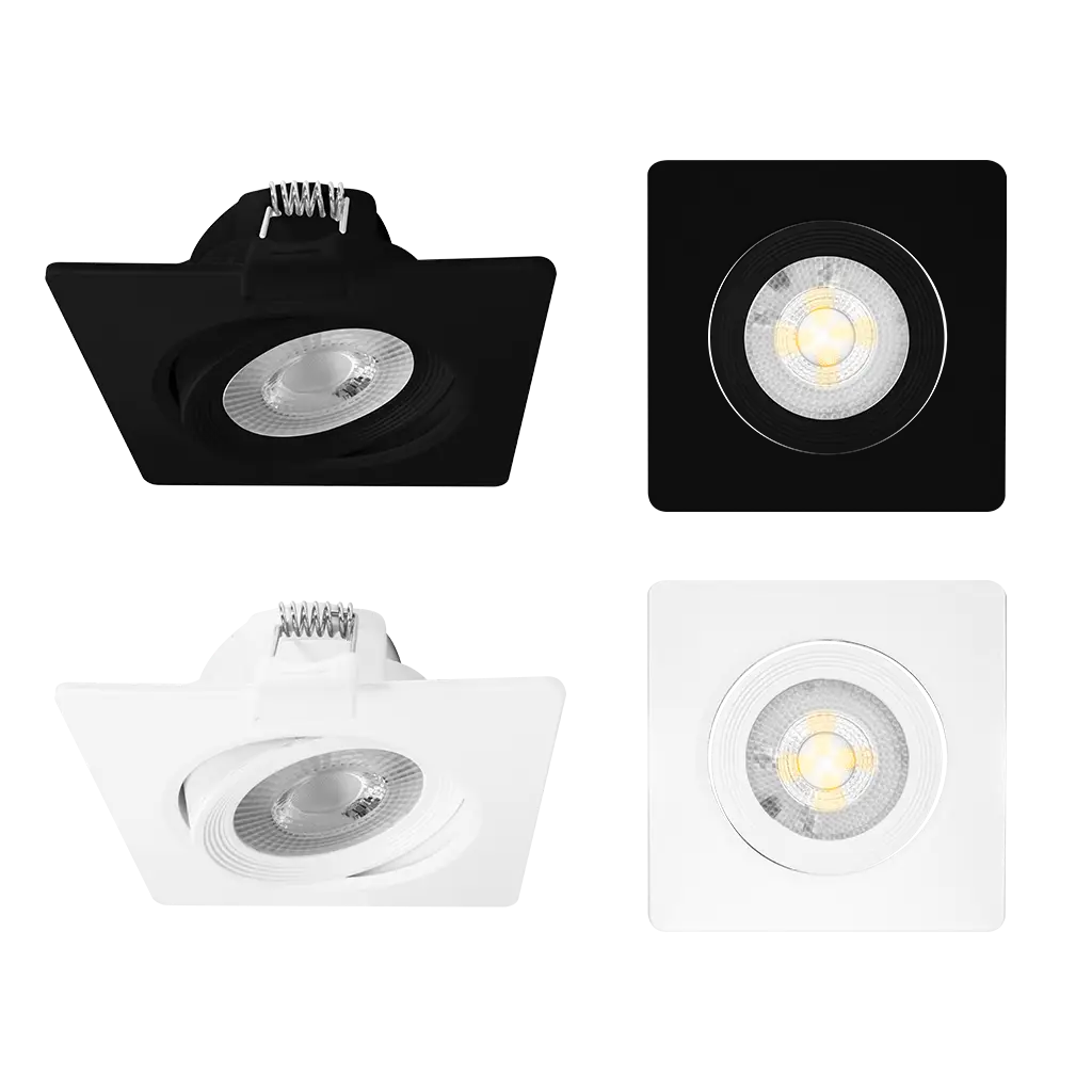 Luminario de techo, de led, blanco cálido 2 700 K (Blanco cálido)° K, 5 Watts, óptica 42°, cuadrado, de empotrar dirigible, policarbonato acabado negro, 100-240V ca, protección IP51