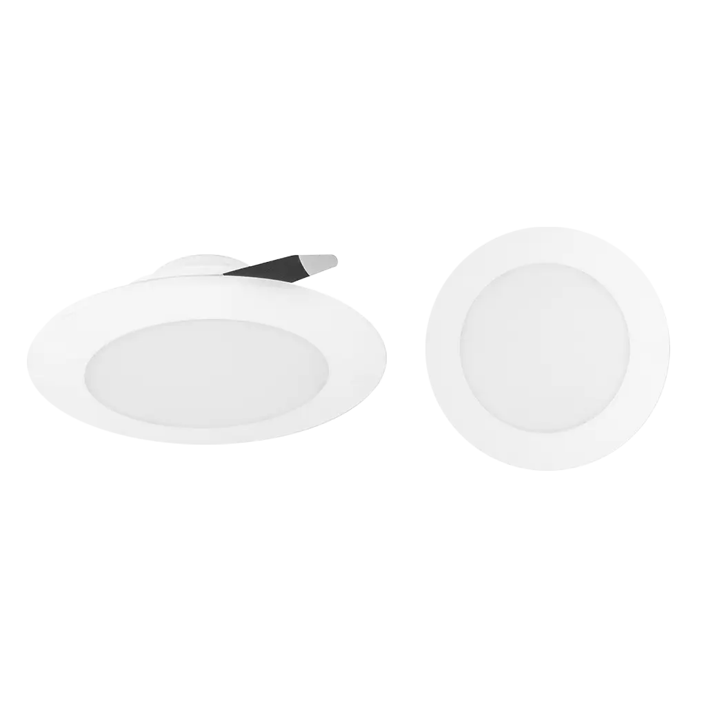 Luminario de techo, de led, blanco cálido, 12 Watts, óptica 120°, redondo, de empotrar, policarbonato, acabado blanco, 85-265V ca, protección IP54