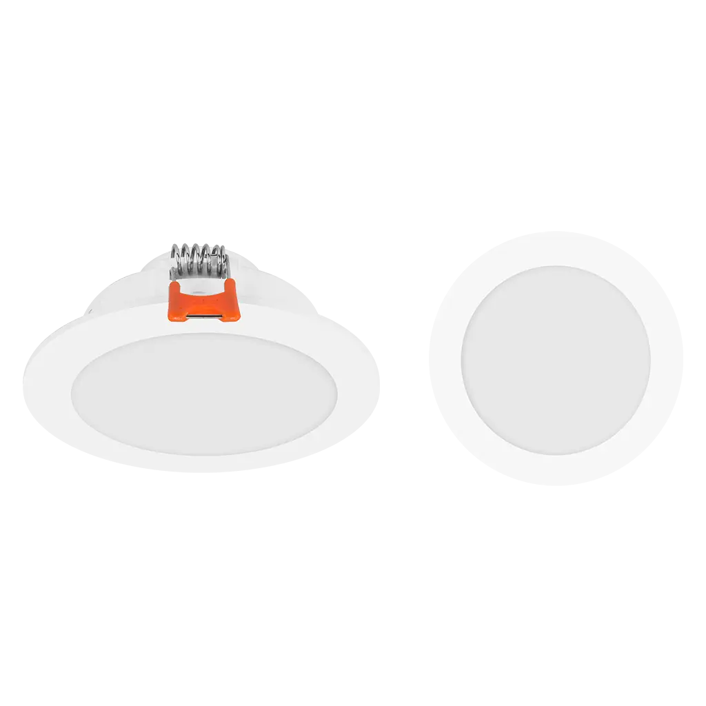 Luminario de techo, de led, blanco cálido, 6 Watts, óptica 120°, redondo, de empotrar, policarbonato, acabado blanco, 85-265V ca, protección IP54