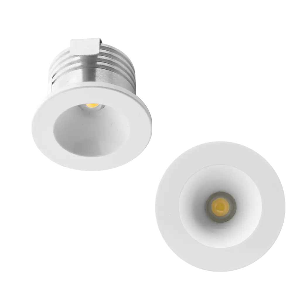 Luminario de techo, de led, blanco cálido, 1 Watt, óptica 120°, redondo, de empotrar, aluminio acabado blanco, 85-265V ca, protección IP20