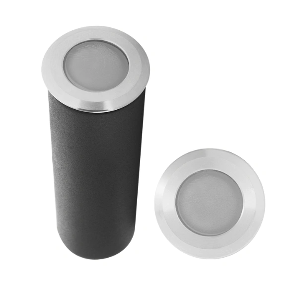 Luminario de piso, de led, blanco cálido, 0.5 Watt, óptica 120 °, redondo, de empotrar, aluminio y policarbonato incluye housing, 85-265 V ca, protección IP65.
