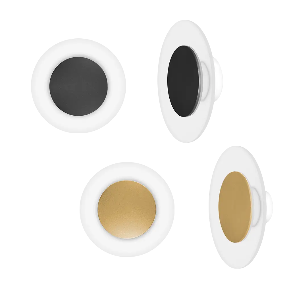 Luminario de pared, de LED blanco cálido, 9 Watts, óptica 360° de sobreponer, aluminio acabado blanco con dorado, 100-265 V ca, protección IP20