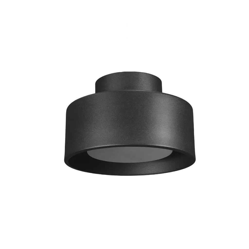 Luminario de sobreponer en techo, de led blanco cálido, 7 Watts, óptica 120°, aluminio acabado negro, 100-265V ca, protección IP20.