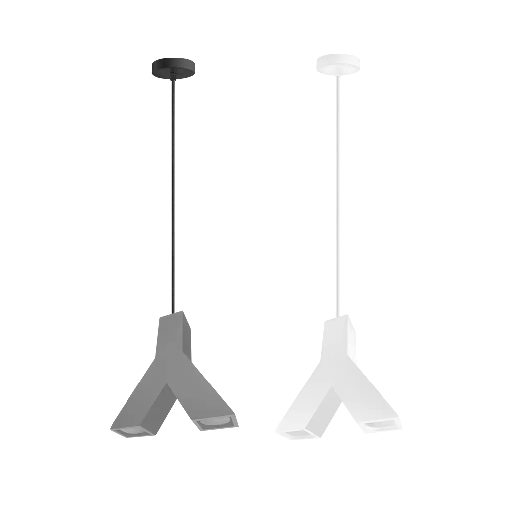 Luminario de suspender, con 2 bases GU10 (sin lámpara) de 25 Watts máximo cada una, óptica 120° de sobreponer, concreto acabado gris, protección IP20