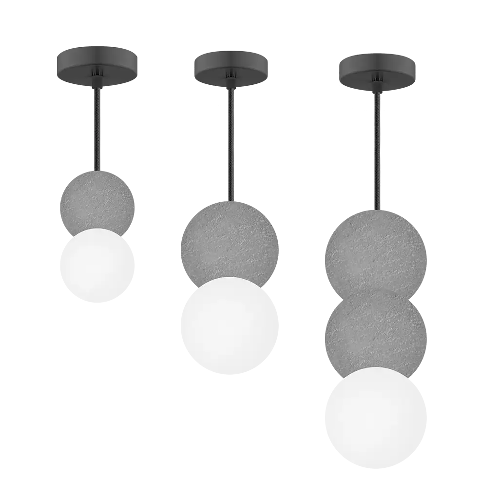 Luminario de suspender, con base G9 (sin lámpara) 15 Watts máximo, óptica 120° de sobreponer, concreto acabado gris, esfera de cristal de 8cm, protección IP20
