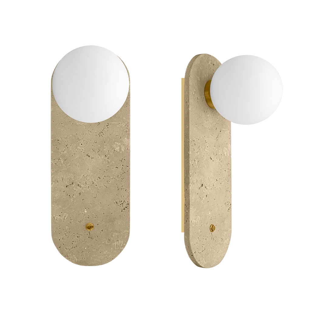 Luminario para sobreponer en pared, base G9 de 15 W máximo (sin lámpara), óptica 360°, travertino acabado beige, 85 – 277 V ca, incluye interruptor, protección IP20