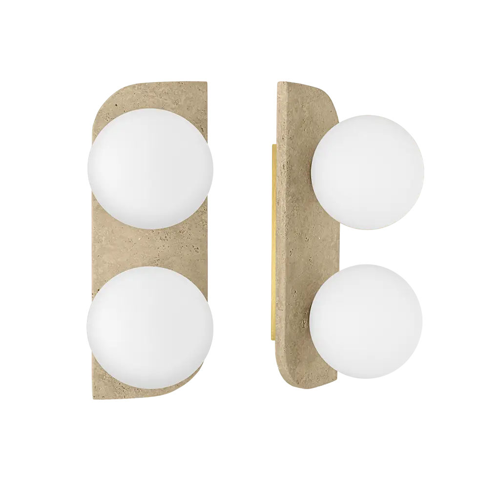 Luminario para sobreponer en pared o techo, con dos bases G9 de 15 W máximo cada una (sin lámparas), óptica 360°, travertino acabado beige, 85 – 277 V ca, protección IP20