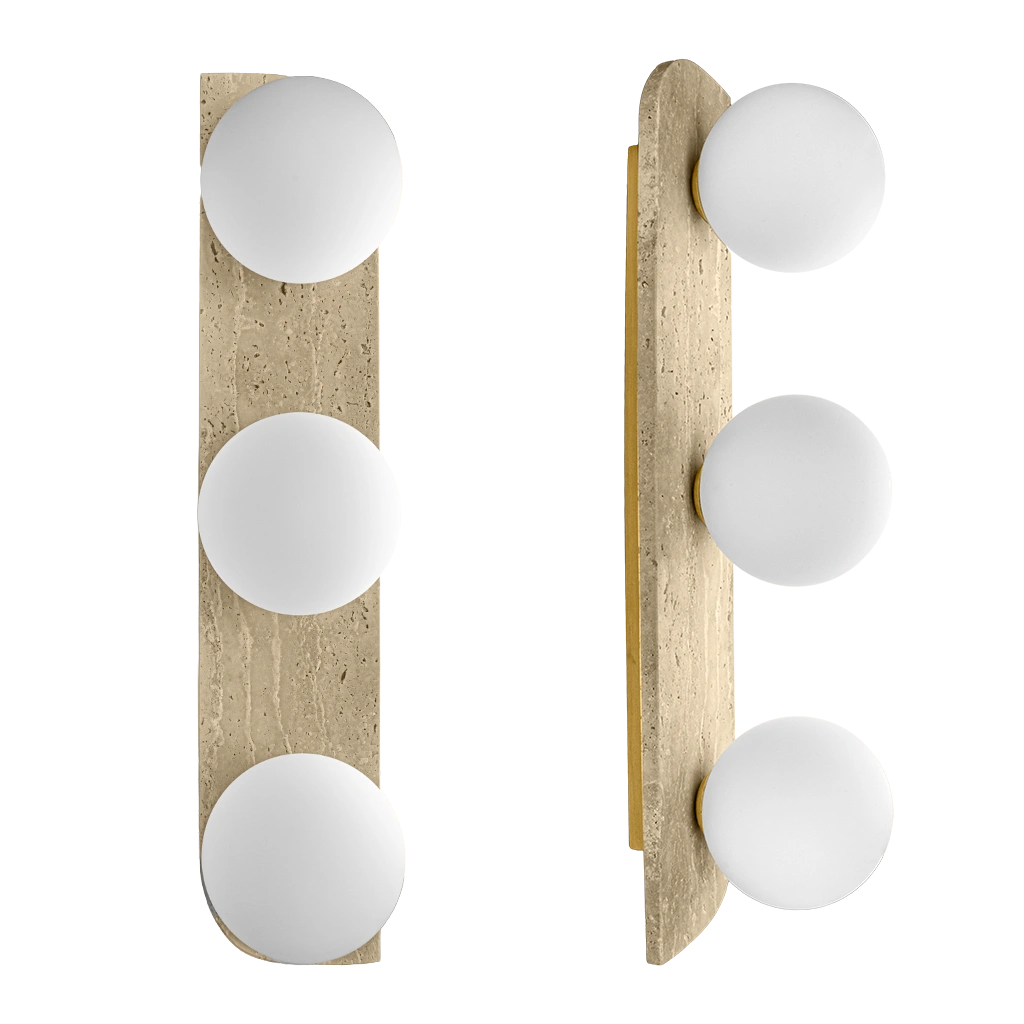 Luminario para sobreponer en pared o techo, con tres bases G9 de 15 W máximo cada una (sin lámparas), óptica 360°, travertino acabado beige, 85 – 277 V ca, protección IP20