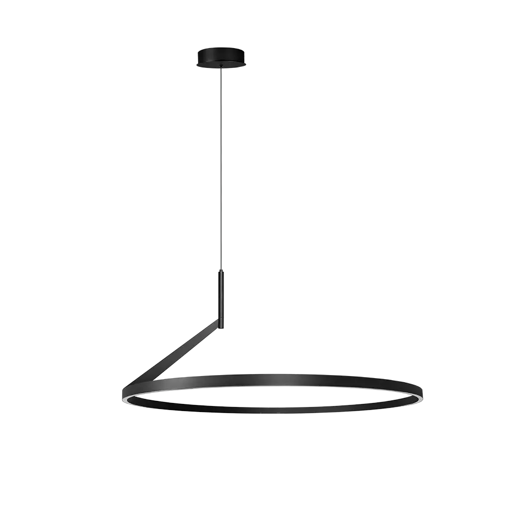 Luminario de LED para suspender, circular de 80 cm de diámetro, blanco cálido, 38 Watts, óptica 120°, aluminio acabado negro, 85 – 265 V ca, protección IP20