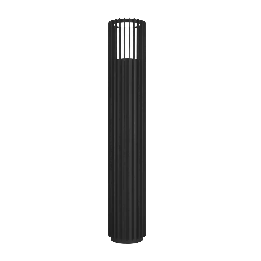 Luminario de piso tipo bolardo, con base G9 (sin lámpara) 15 Watts máximo, óptica 120° de sobreponer, aluminio acabado negro, 100-265Vca, protección IP54.