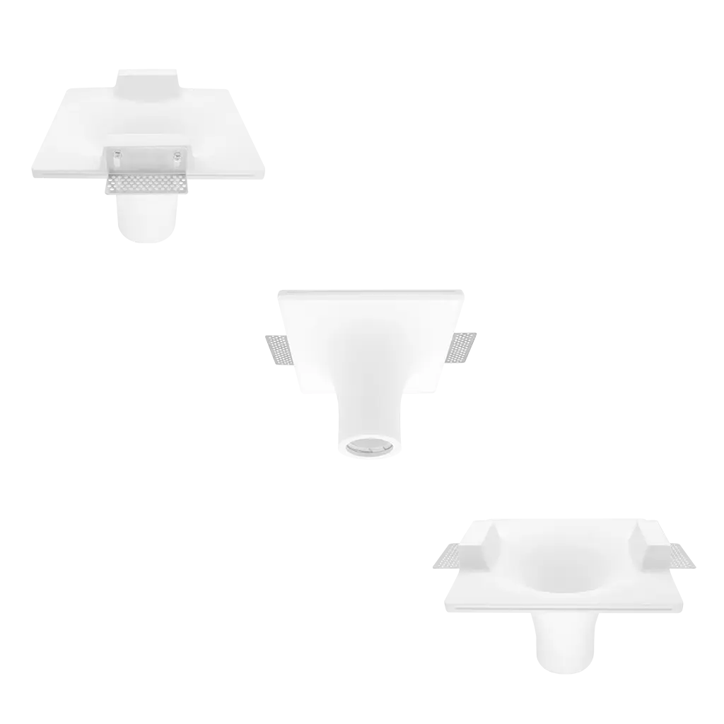 Luminario de techo, con base GU10 (sin lámpara) 25 Watts máximo, óptica de 120°, de empotrar trimless, yeso acabado blanco, 85 – 277 V ca, protección IP20.