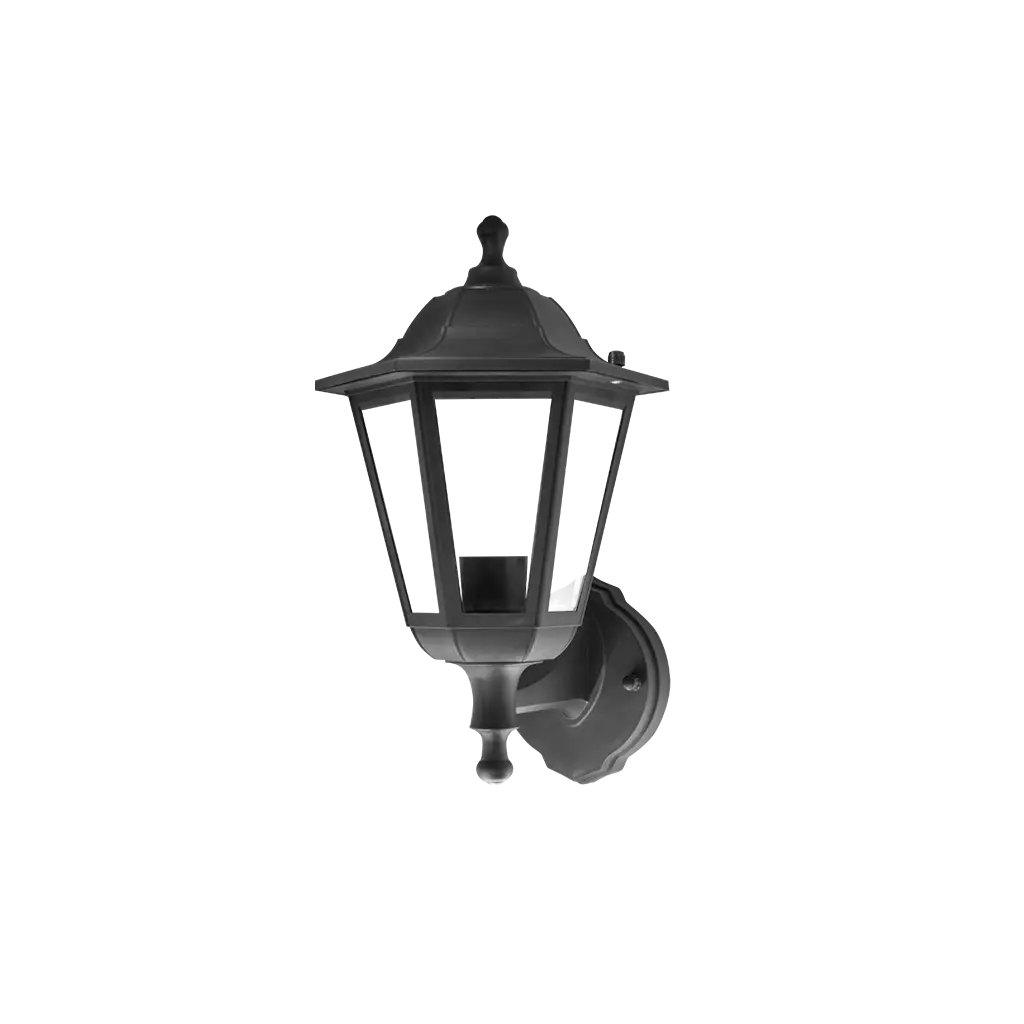 Luminario para lámpara E27, 60 Watts máx., tipo farol, policarbonato acabado negro, no incluye lámpara, 100-240V ca, protección IP44