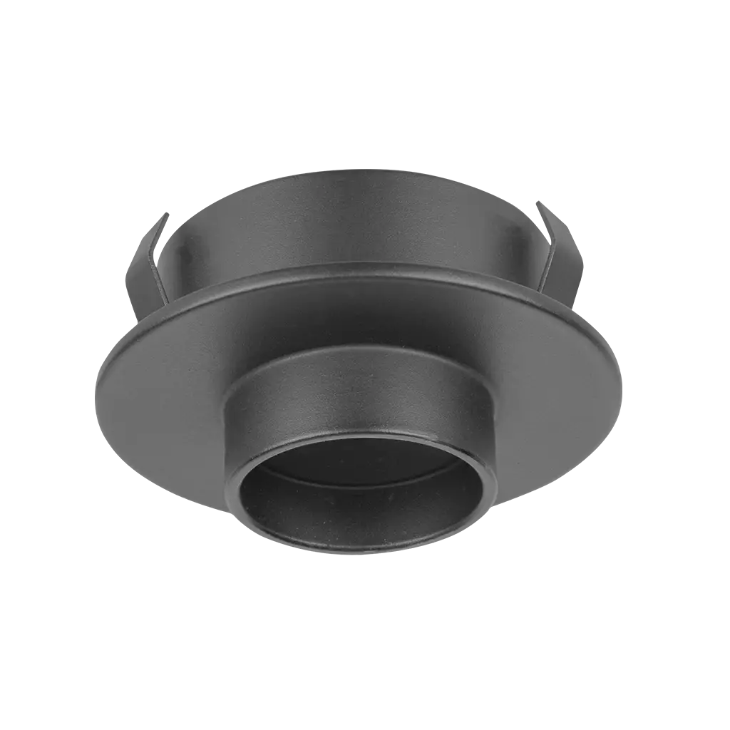 Luminario para empotrar en mueble, atenuable redondo, de LED, blanco cálido, 2 Watts, óptica 24° con bisel antideslumbrante, aluminio acabado negro, 24 V cc, protección IP20.