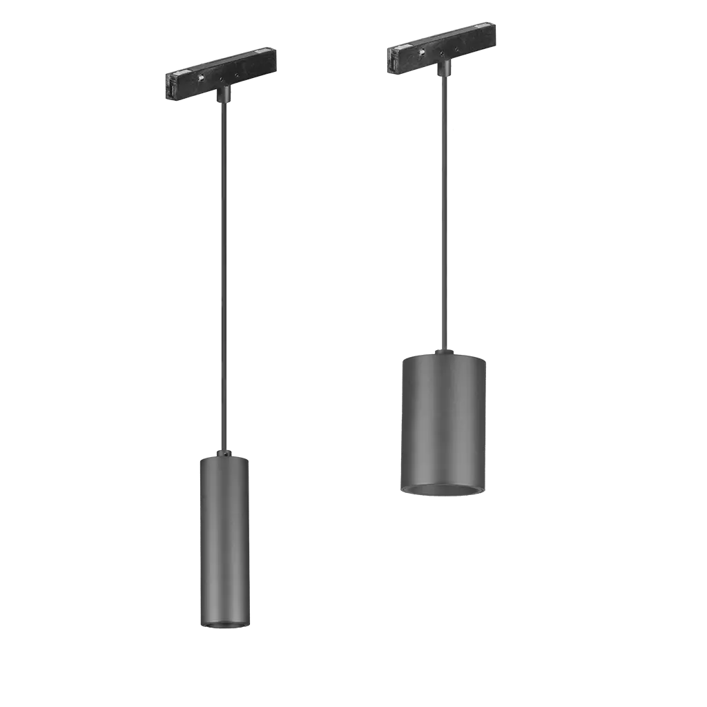 Luminario para suspender en nano track magnético, no atenuable cilíndrico, de LED, blanco cálido, 2 Watts, óptica 24°, aluminio acabado negro, 24 V cc, protección IP20