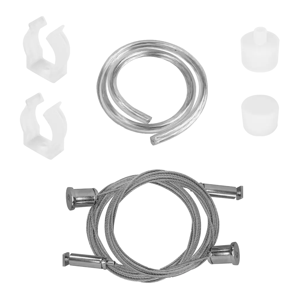 Kit tubo acero inoxidable acabado cepillado de 2 m, incluye kit de suspensión 2m y 2m de cable transparente calibre 22