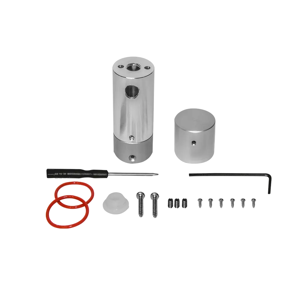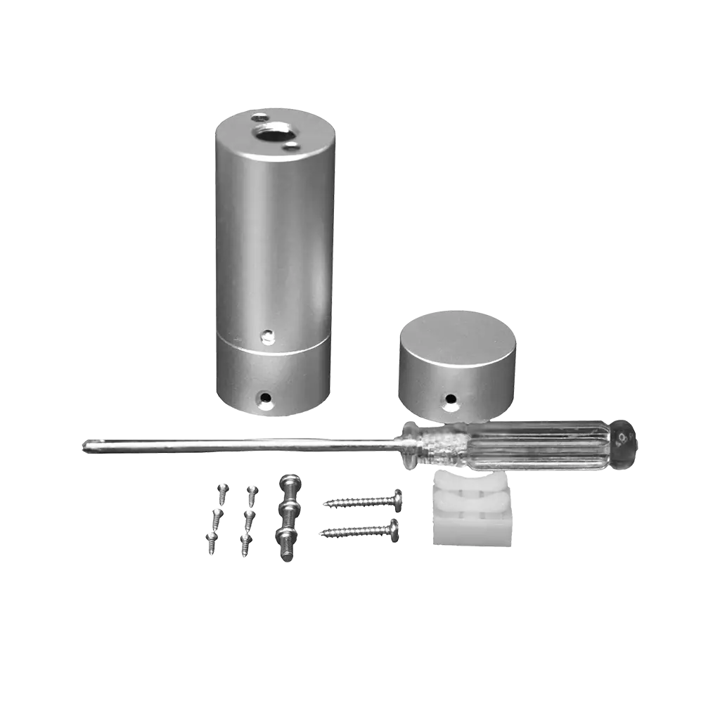 Kit para sobreponer vertical tira de led tipo NEON, aluminio acabado natural. Incluye: 1 soporte superior, 1 casquillo inferior y accesorios. (El tubo de policarbonato se vende por separado 1 m y 2 m largo)