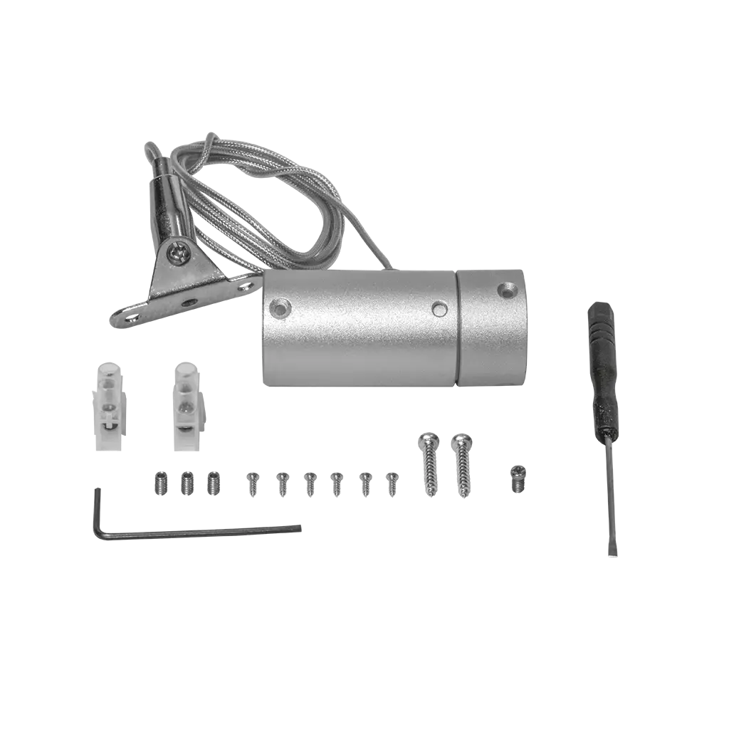 Kit de suspensión vertical para tira de led tipo NEON, aluminio acabado natural. Incluye: 1 soporte superior, 1 casquillo inferior, cable de acero ajustable de 0 a 95 cm y accesorios. (El tubo de policarbonato se vende por separado 1 m y 2 m largo)