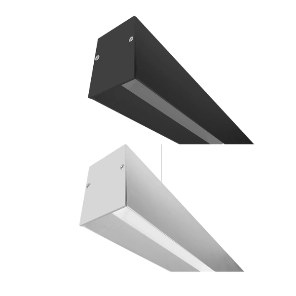 Kit de perfil para tira extraplana de led, sin ceja, que incluye, perfil rectangular de aluminio acabado negro de 2 m, mica difusa negra traslúcida de 2 m, kit de 2 tapas laterales y kit de 2 grapas, de empotrar o sobreponer, protección IP20.