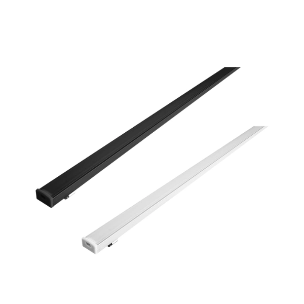 Kit de perfil para tira extraplana de LED, sin ceja, que incluye, perfil rectangular de aluminio acabado negro de 2 m, mica negra traslucida de 2 m, kit de 2 tapas laterales negras y kit de 2 grapas, de sobreponer o suspender, protección IP20