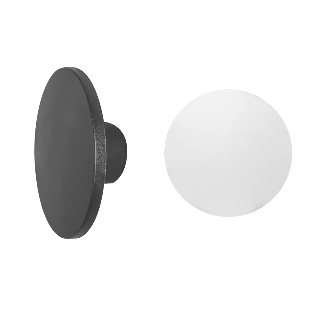 Luminario de pared, de LED, blanco cálido, 6 Watts, redondo salida trasera, de sobreponer, policarbonato acabado negro, 100-240 V ca, protección IP65