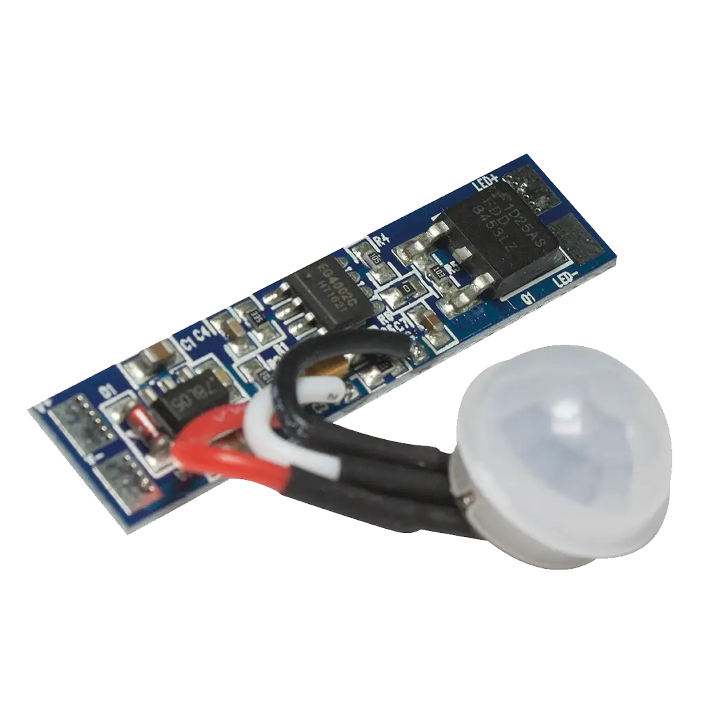 Sensor PIR ON-OFF para tira extraplana, de led, 72 Watts- 144 Watts, PCB incluye sensor con cable, 12-24V cc, protección IP20