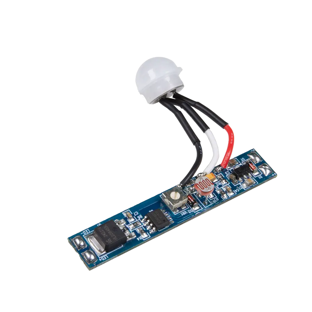 Sensor PIR ON-OFF con foto celda para para tira extraplana de led, 72 Watts- 144 Watts, PCB incluye sensor con cable, 12-24V cc, protección IP20