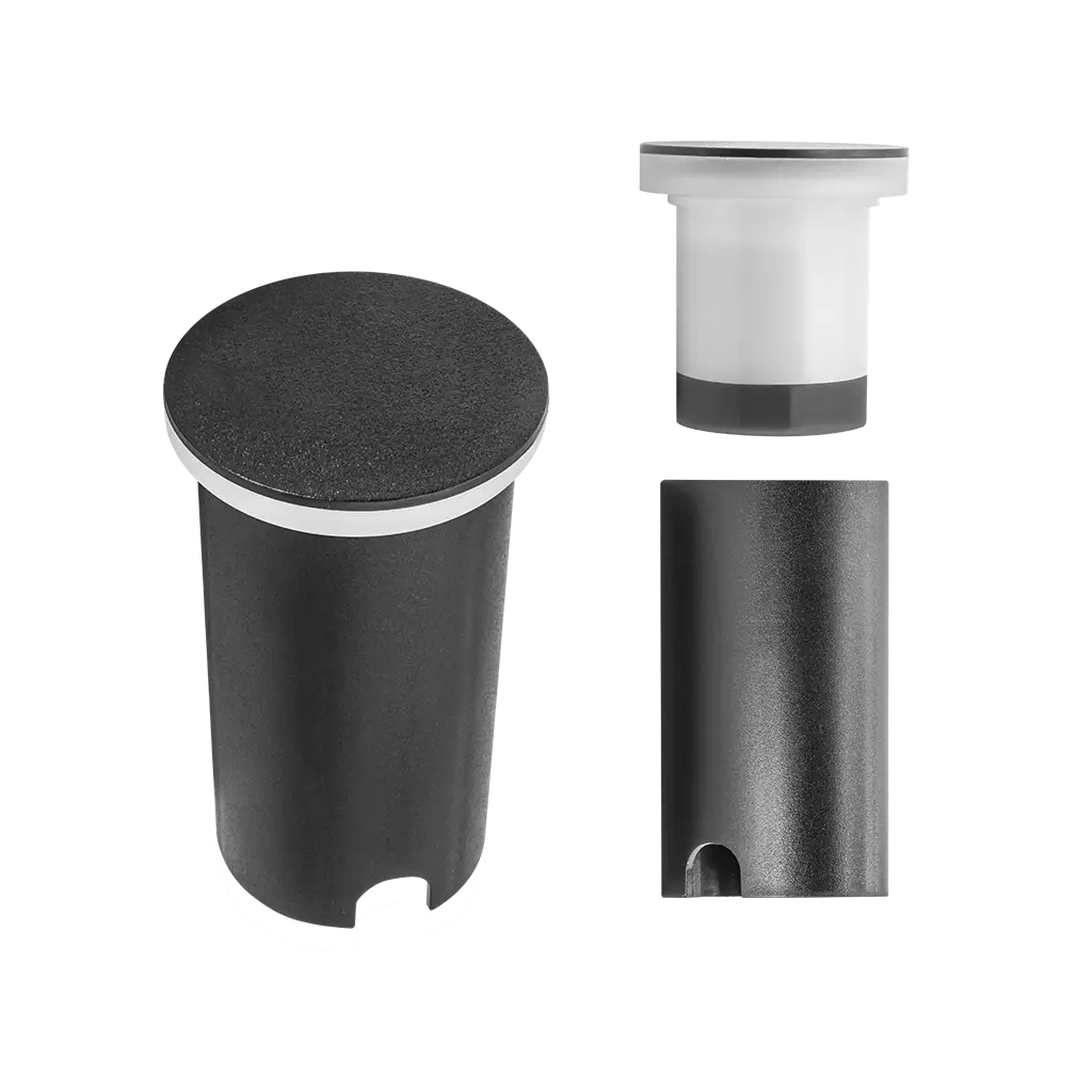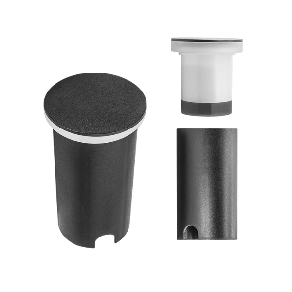 Luminario de piso, de LED, blanco cálido, 1 Watt, redondo, de empotrar, policarbonato acabado negro, incluye housing de policarbonato, 100 – 240V ca, protección IP67.