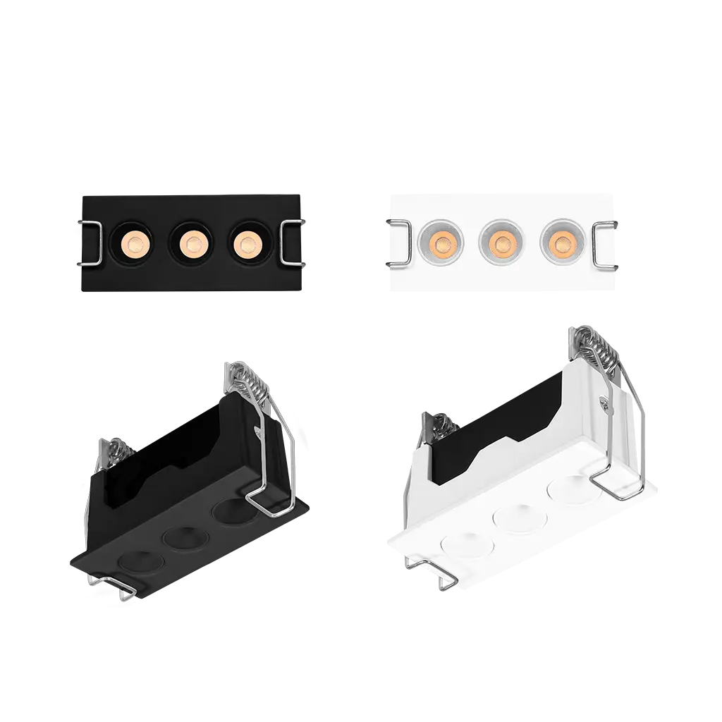 Luminario de techo, rectangular puntual slim fijo, de LED, blanco cálido, 6 Watts, óptica de 36°, de empotrar, aluminio acabado negro, 85 – 277 V ca, protección IP20