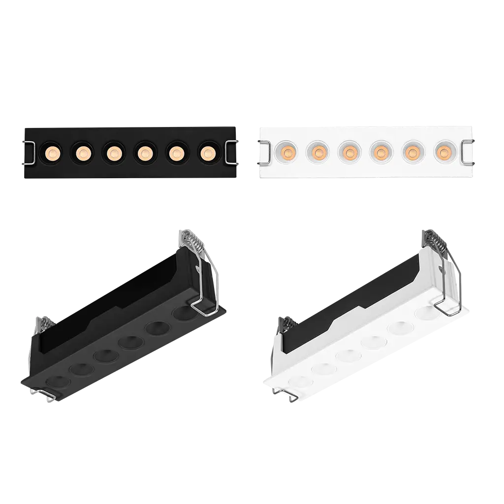 Luminario de techo, rectangular puntual slim fijo, de LED, blanco cálido, 9 Watts, óptica de 36°, de empotrar, aluminio acabado negro, 85 – 277 V ca, protección IP20