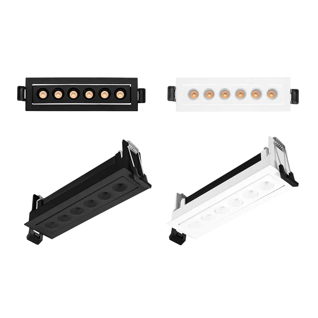 Luminario de techo, rectangular, puntual, slim dirigible, de LED, blanco cálido, 9 Watts, óptica de 36°, de empotrar, aluminio acabado negro, 85 – 277 V ca, protección IP20
