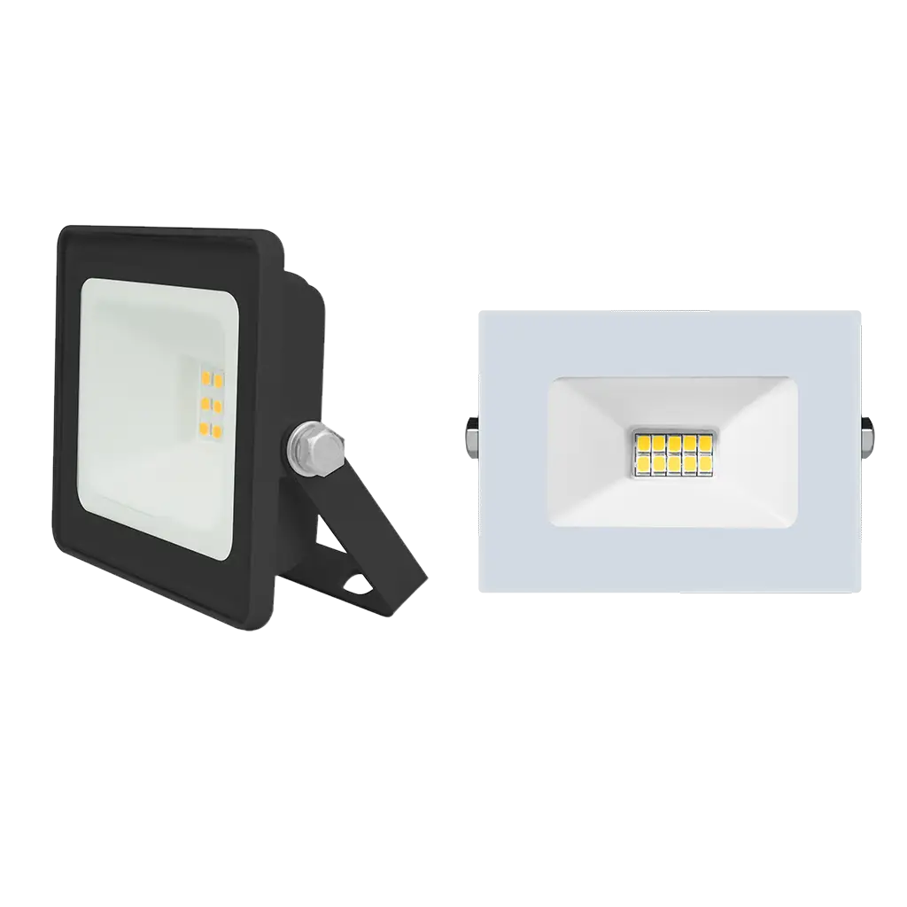 Luminario tipo reflector plano, de led, blanco, 10 Watts, óptica 120°, rectangular, de sobreponer dirigible, aluminio acabado negro y cristal templado, 100-240V ca, protección IP65