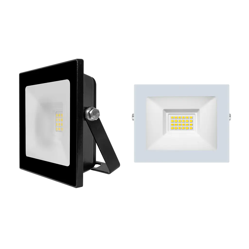 Luminario tipo reflector plano, de led, blanco, 30 Watts, óptica 120°, rectangular, de sobreponer dirigible, aluminio acabado negro y cristal templado, 100-240V ca, protección IP65