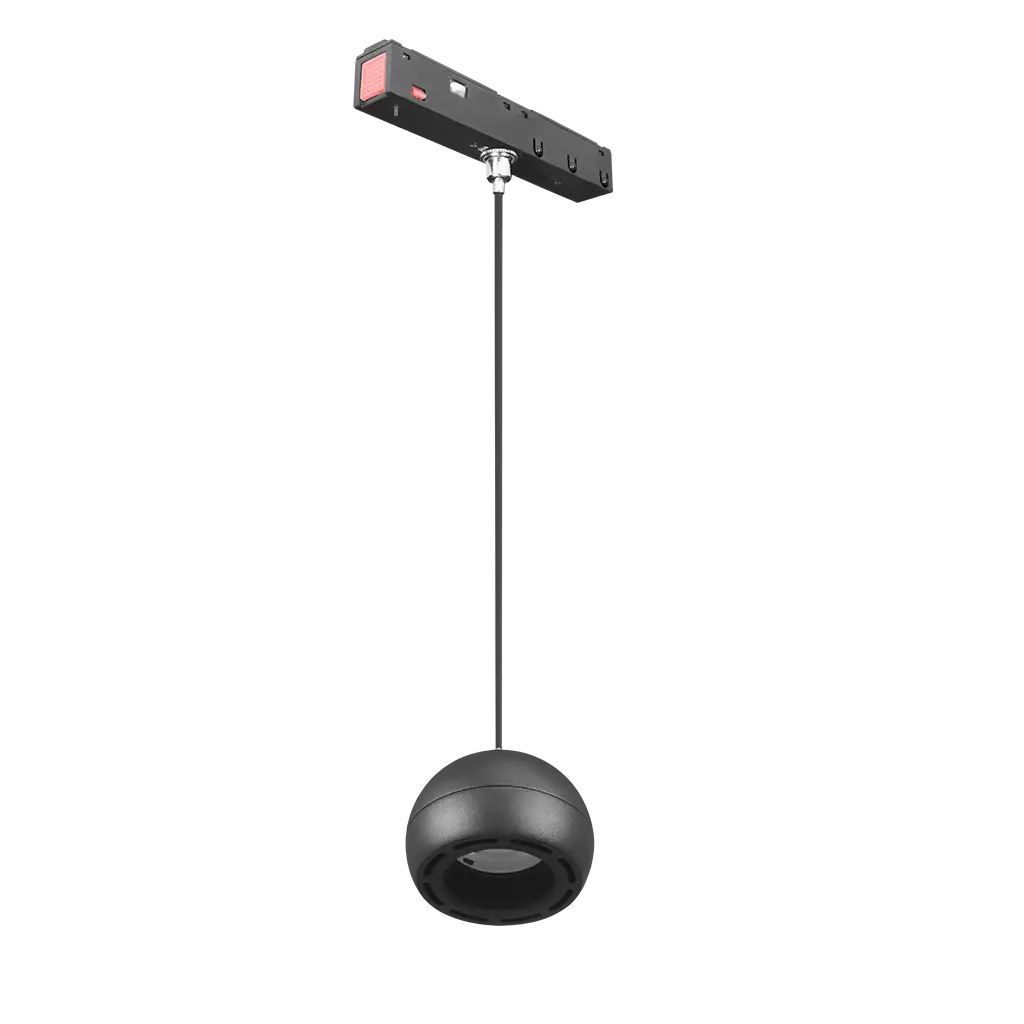 Luminario para riel magnético, de suspender, de LED, 2700 K / 4100 K / 5500 K, 7 Watts, óptica 24°, aluminio acabado negro, 48V cc, protección IP20, con cambio de temperatura de color controlado vía aplicación.