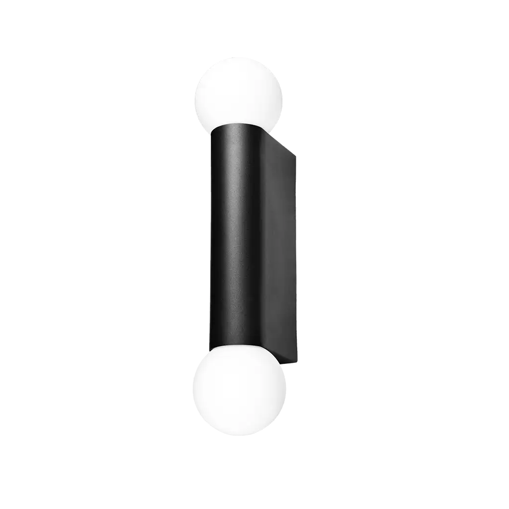 Luminario de pared, con 2 bases E14 (sin lámparas) 50 Watts máximo, óptica 360° de sobreponer, aluminio acabado negro con difusor de cristal difuso, protección IP54