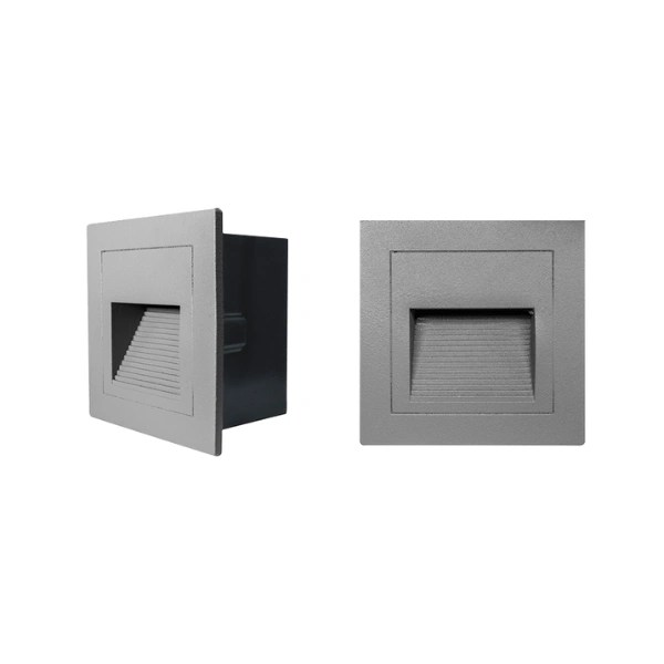 Luminario de pared, con 1 led, blanco cálido, 2 Watts, óptica 120°, cuadrado, de empotrar, tapa de aluminio gris cuerpo aluminio y housing de plástico, 85-265V ca, protección IP54