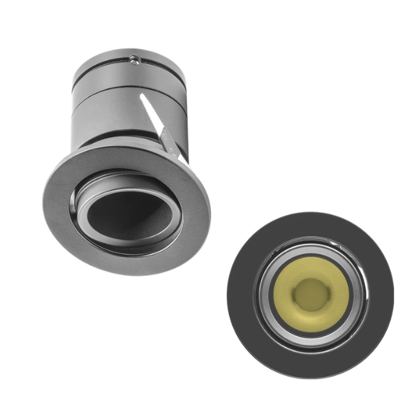 Luminario de techo, de LED, dirigible blanco neutro, 7 Watts, óptica 15°, redondo, de empotrar, aluminio acabado negro, 85-265V ca, protección IP20