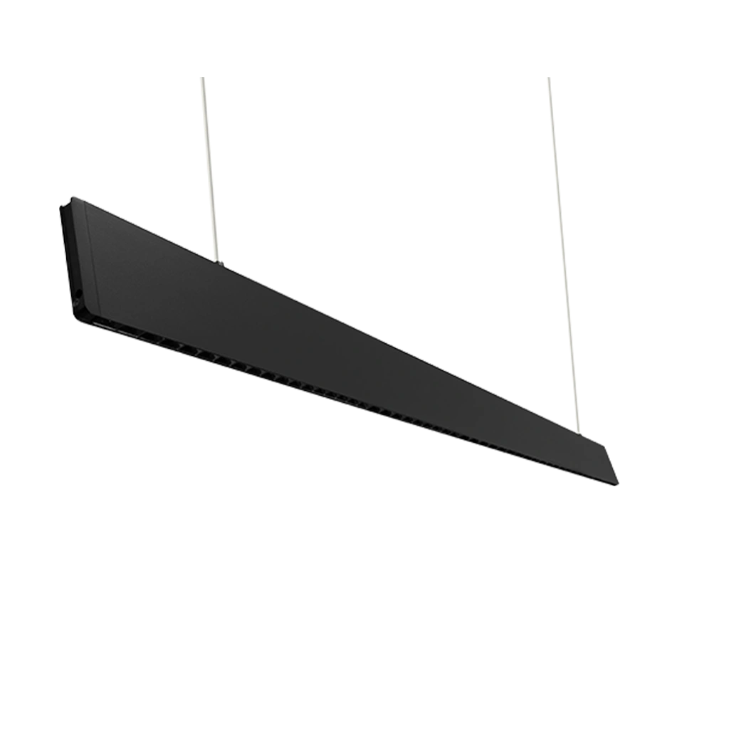 Luminario de LED, con cambio de temperatura de color, 40 Watts (30 W luz directa, 10 W luz indirecta), óptica 53°, rectangular, de suspender (incluye canopes para sobreponer en techo), aluminio acabado negro, 85-265V ca, protección IP20