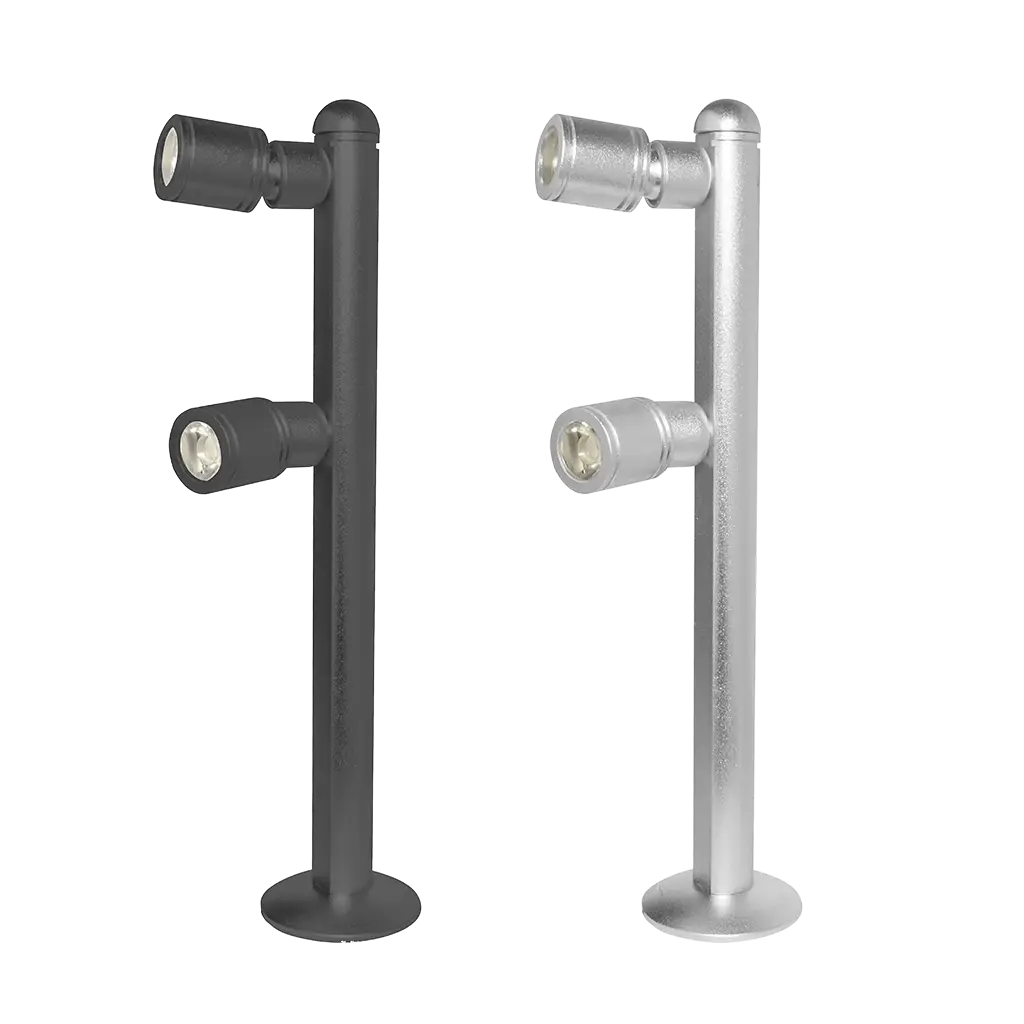 Luminario tipo poste con 2 cabezales, de led, blanco neutro, 2 Watts, óptica 35°, cilíndrico, de sobreponer dirigible, aluminio acabado gris, 85-265V ca, protección IP20